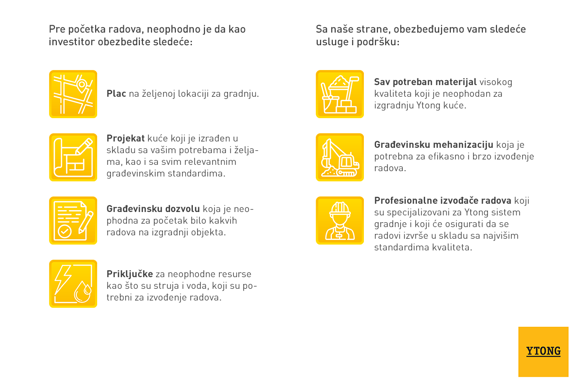 Kompanija Xella će dopremiti na gradilište sav potreban materijal, građevinsku mehanizaciju i obezbediti profesionalne izvođače radova koji su specijalizovani za Ytong sistem gradnje.