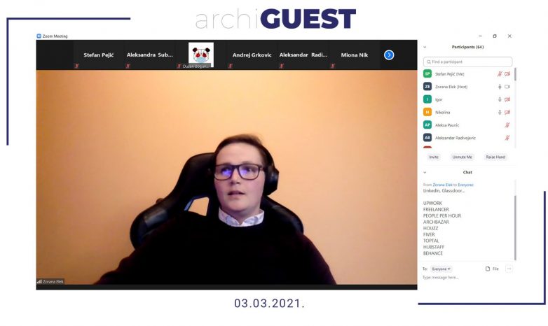 Te 2021. godine, grupa entuzijastičnih studenata imala je želju da u pasivnim danima izolacije i ograničenog kretanja, pokrene stručni događaj vredan pažnje kako studenata i profesora, tako i mnogih ljudi iz struke. Prvi gostujući predavač bila je arhitektkinja Zorana Elek i upravo ona je održala onlajn predavanje.
