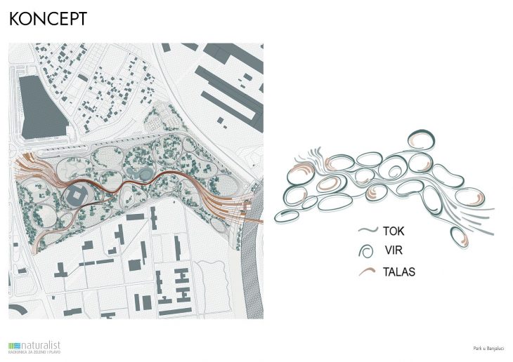 „Oblikovni koncept parka inspirisan je Vrbasom, Vrbanjom i pojmovima koje vezujemo za reku: tok, vir, talas, meandar, delta“ – objašnjavaju naši sagovornici.