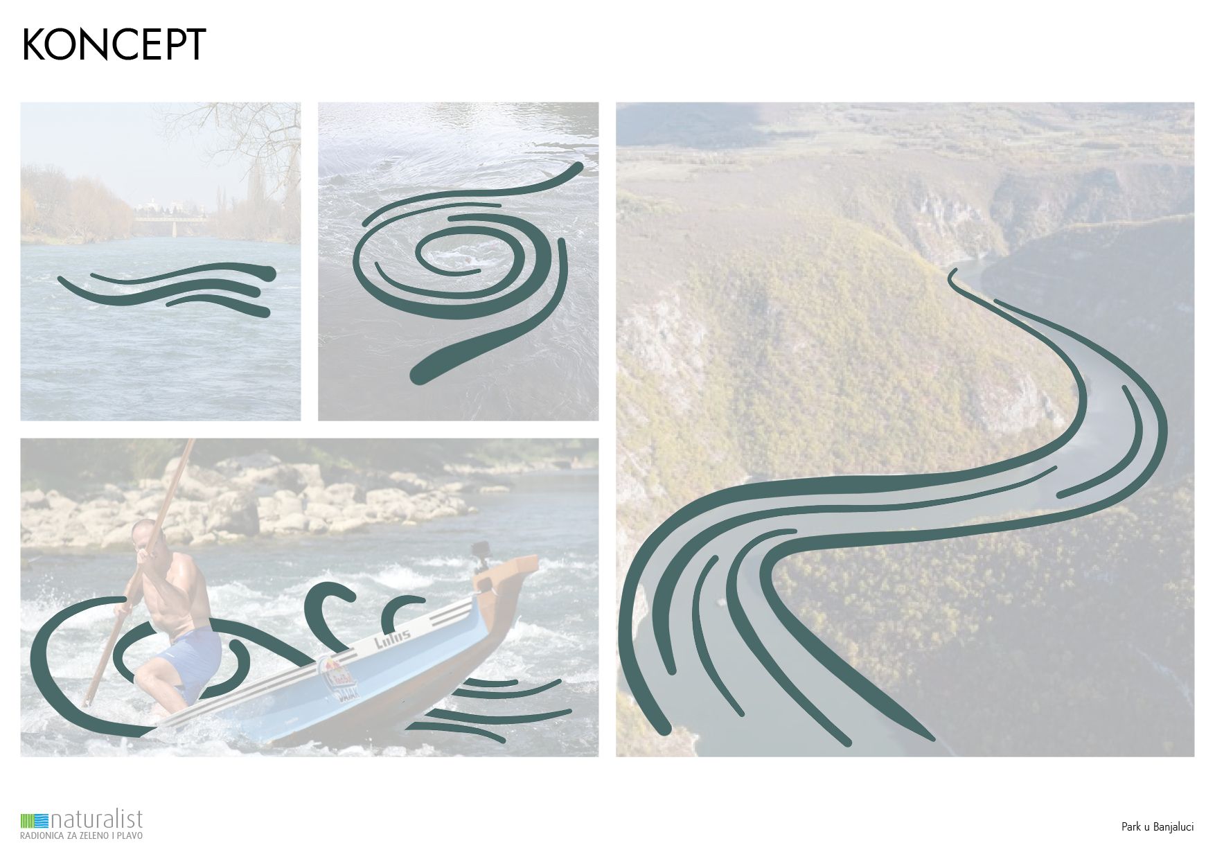 „Oblikovni koncept parka inspirisan je Vrbasom, Vrbanjom i pojmovima koje vezujemo za reku: tok, vir, talas, meandar, delta“ – objašnjavaju naši sagovornici.