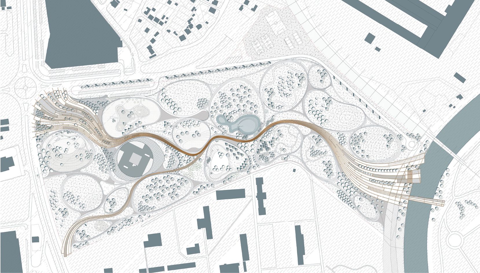 „Tačka, linija, površina – vir, tok, talas, slede jedni druge, nadovezuju se, menjaju ritam, prepliću se, razilaze… Iz ovih analiza i kroz superponiranje ovih pojmova proistekao je princip za projekat parka“ – kažu dobitnici Gran prija.