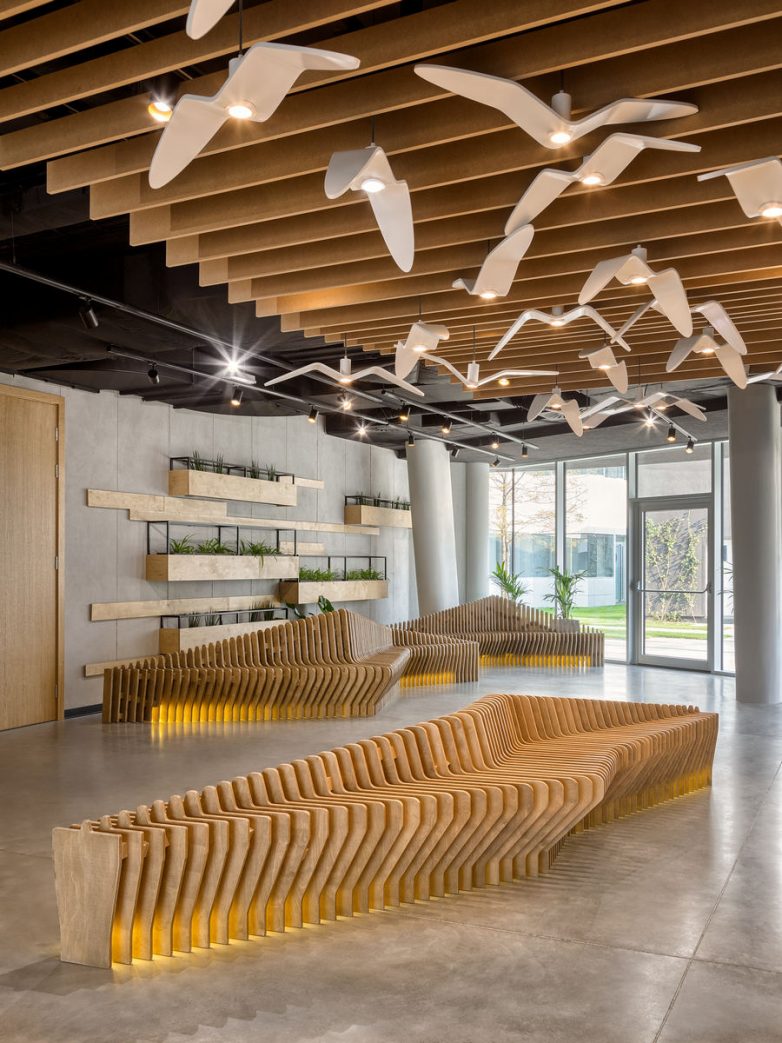 Kompanija Nordeus je za potrebe uređenja enterijera angažovala projektni biro Antipod, o kojem je već bilo reči. Međutim, na projektu uređenja pristupnih, javnih enterijera posebno je bio angažovan biro KDA na čelu sa arhitektom Ksenijom Đorđević. Ona je prepoznala želju investitora da svaki element kompleksa, bilo da je u pitanju arhitektura ili enterijer, mora biti nesvakidašnji, ali i koncept austrijskog kolege, pa je svojim rešenjem samo još dodatno obogatila javne zone kompleksa.