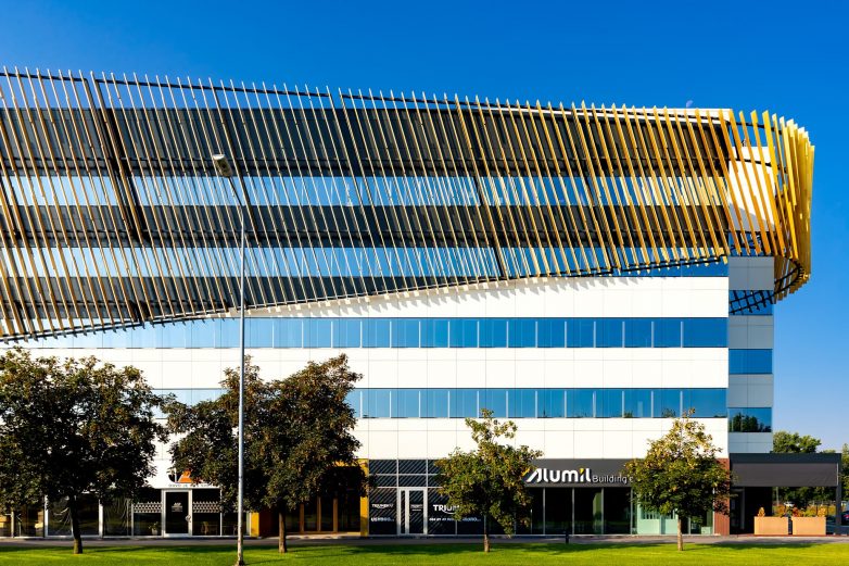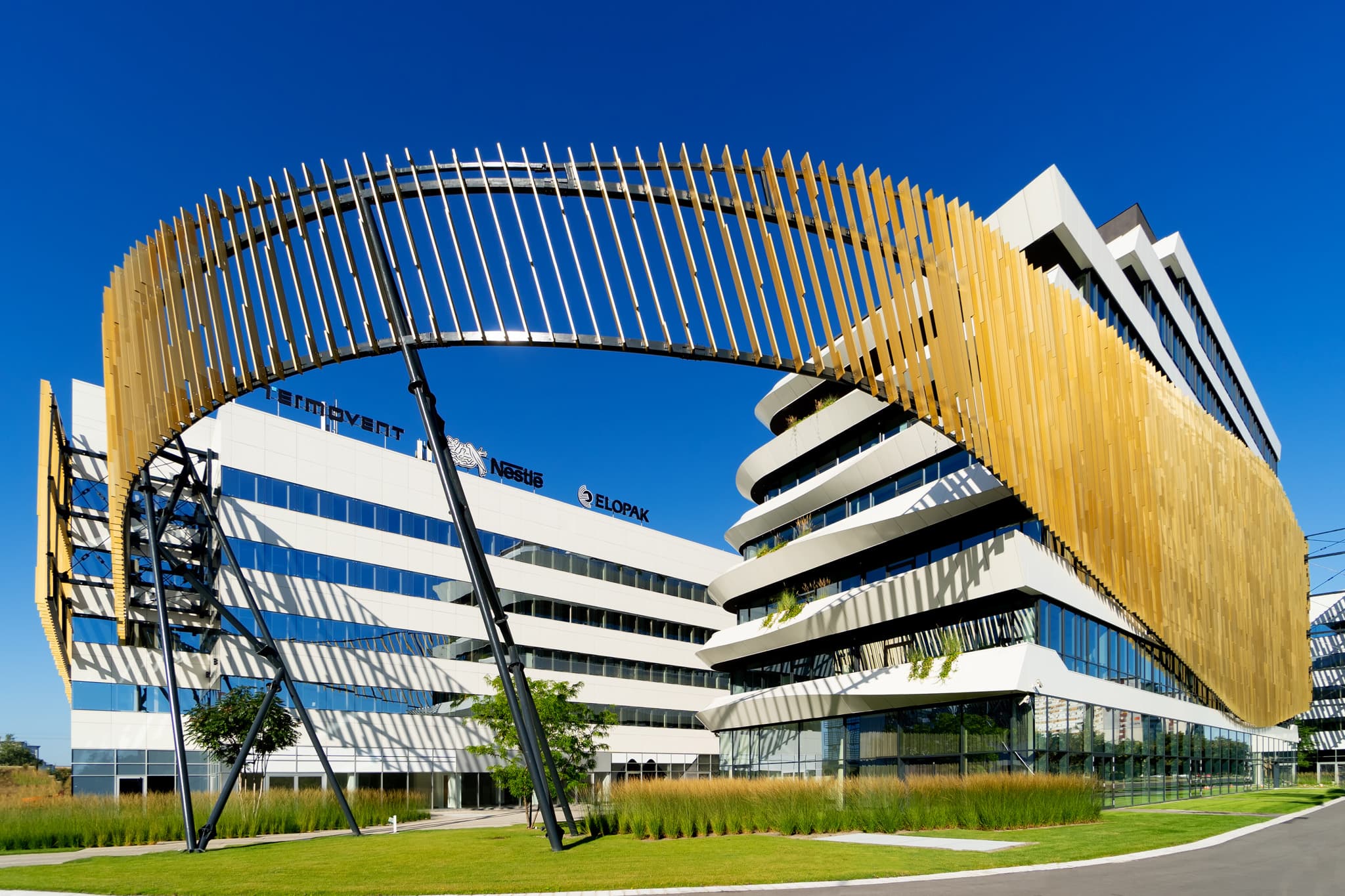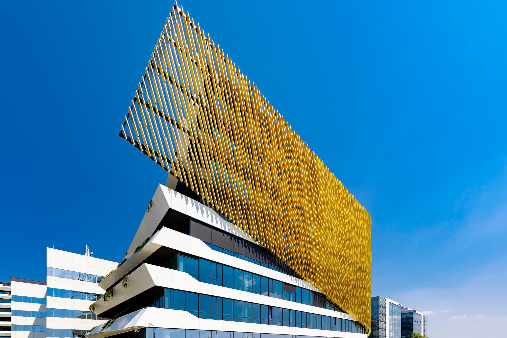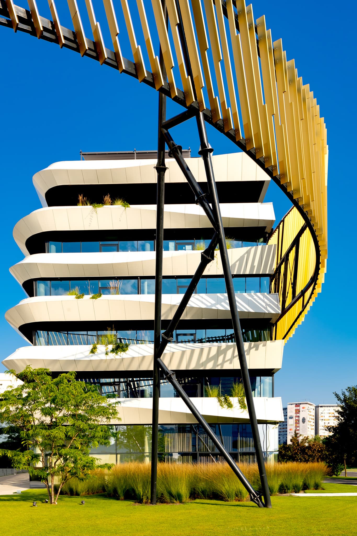 Pored dva postojeća objekta, autor je projektovao i tri nova, kao i znatno uvećanje kapaciteta podzemne garaže, a sve to zaodenuto u u jednu neobičnu arhitekturu. Arhitekta su u ovom projektu okrenuo principima starim više od pola veka, po kojim su predstavnici internacionalne moderne svoje zgrade projektovali po uzoru na brodove. Bilo da su u pitanju bile forme ili samo detalji okruglih brodskih prozora (okulusa), te moderne zgrade su po svemu gledale da se drže tada aktuelnih trendova mašinskog dizajna, a koji je revolucionarno promenio i industriju automobila, vozova i aviona. Ako je tada akcenat bio na novoj industrializaciji i „mašinama za stanovanje“ (Le Korbizje), sada su sve više aktuelni koncepti prostora za opuštanje, tj. da ljudima boravak na radnom mestu što više bude ugodniji i opuštajući, pa je i sama arhitektura ispratila ovaj koncept.