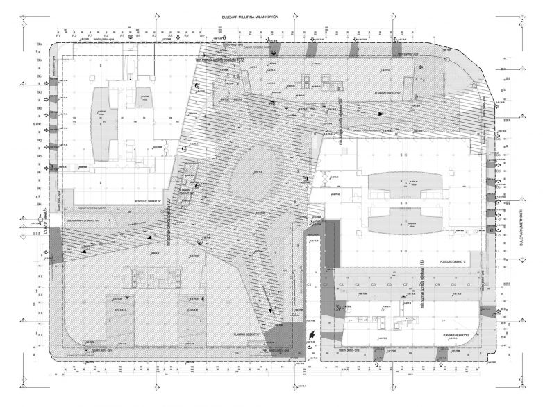 A šta bi pokazale fotografije kad bi se kadar malo spustio? Ima istine u ovom tekstu, ali ukupno gledano više se radi o šminki nego u potpunosti kvalitetnom i funkcionalnom prostoru. Ok, za razliku od bezličnih poslovnih zgrada u obližnjim blokovima kao što su npr Sirius, Navigatori, NCR, itd, ovde jeste načinjen iskorak u oblikovanju arhitekture. Postavlja se pitanje – kako smo došli od prvobitna 2 objekta do 4, uz povećanje % zauzetosti? Da li je opna i priča o zelenoj unutrašnjosti samo markentiški trik koji maskira realan manjak % zelenila? Na nižem kadru bi se video nakaradni haos sa parkiranjem zbog manjka parking mesta za toliki broj zaposlenih u kompleksu, kako ovom tako i okolnim, zbog prvenstveno malog broja propusanih parking mesta, a onda i zbog načina korišćenja garaža gde parkiraju samo privilegovani. Zaposleni na početku dana imaju muku kako će stići do posla, gde će parkirati, a onda tu muku prenose na okolne starije stambene blokove. Tek kad budemo imali potpuno zaokružena funkcionalna rešenja novih kompleksa možemo pričati i o oblikovnim i enterijerskim vrednostima… a toga u Beogradu nema.
