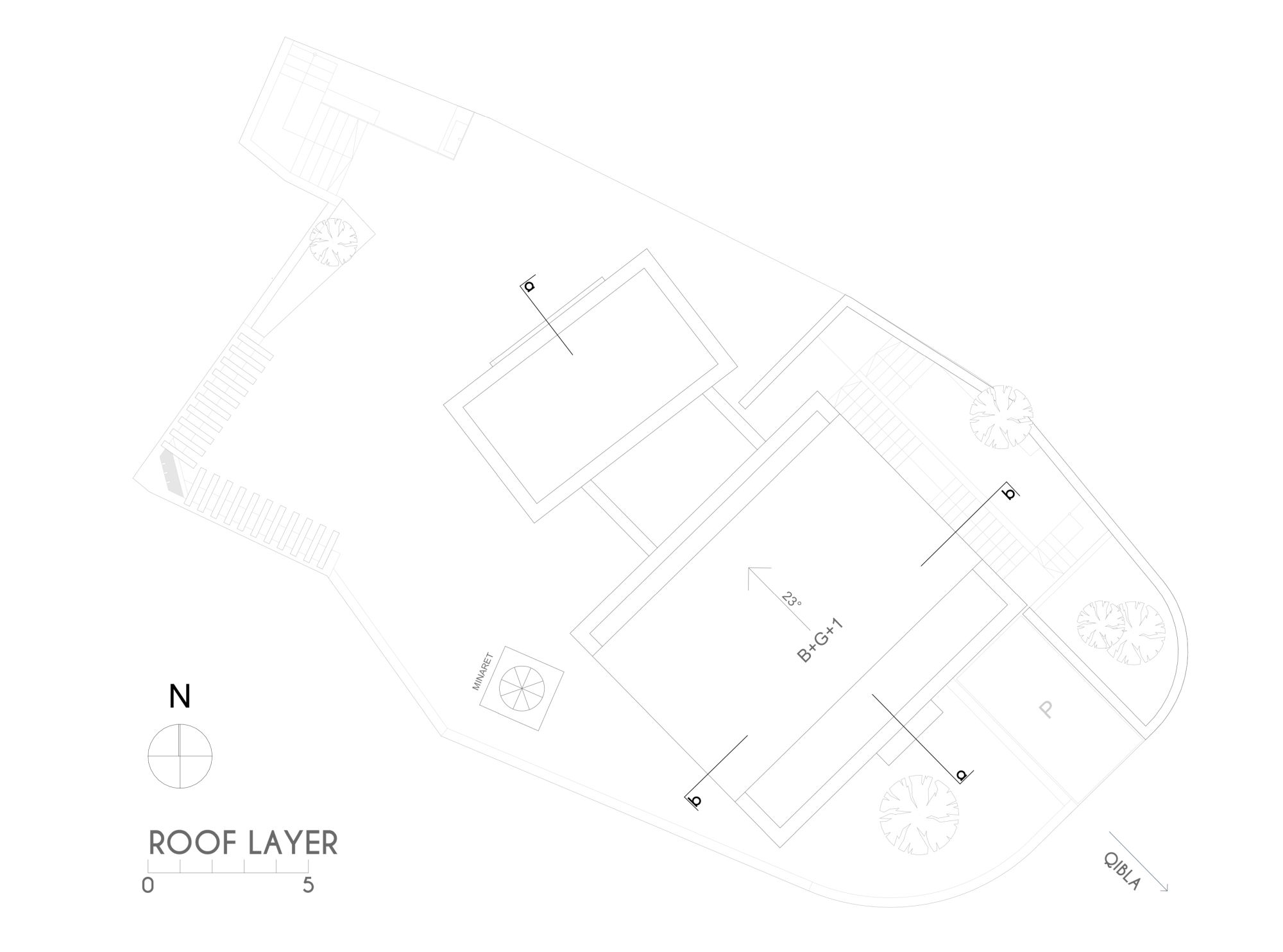 Kombinaciju dva povezana volumena sa dvorišnim zidom objekat duguje tradicionalnoj matrici zatečene arhitekture.