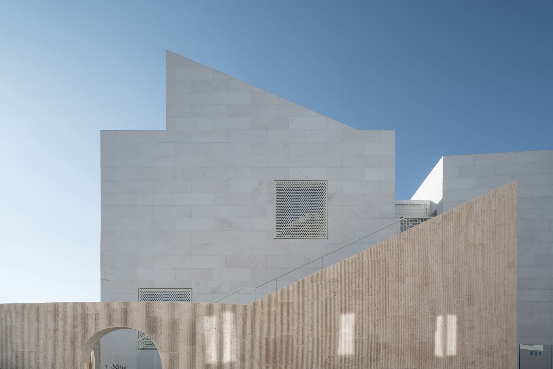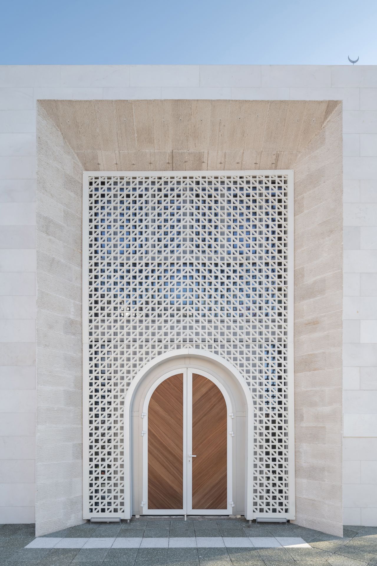 Otvori na fasadi su pažljivo dozirani kako bi se obezbedila potrebna količina svetlosti, a ujedno i intima u prostoru. Preko prozora i vrata su projektovane pozicije od geometrizovanih arabesknih motiva koji doprinose razumevanju osnovne funkcije objekta.