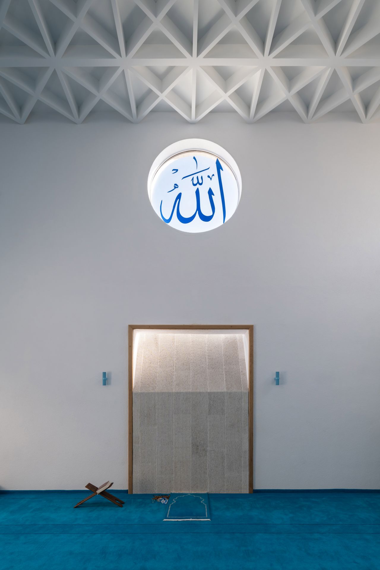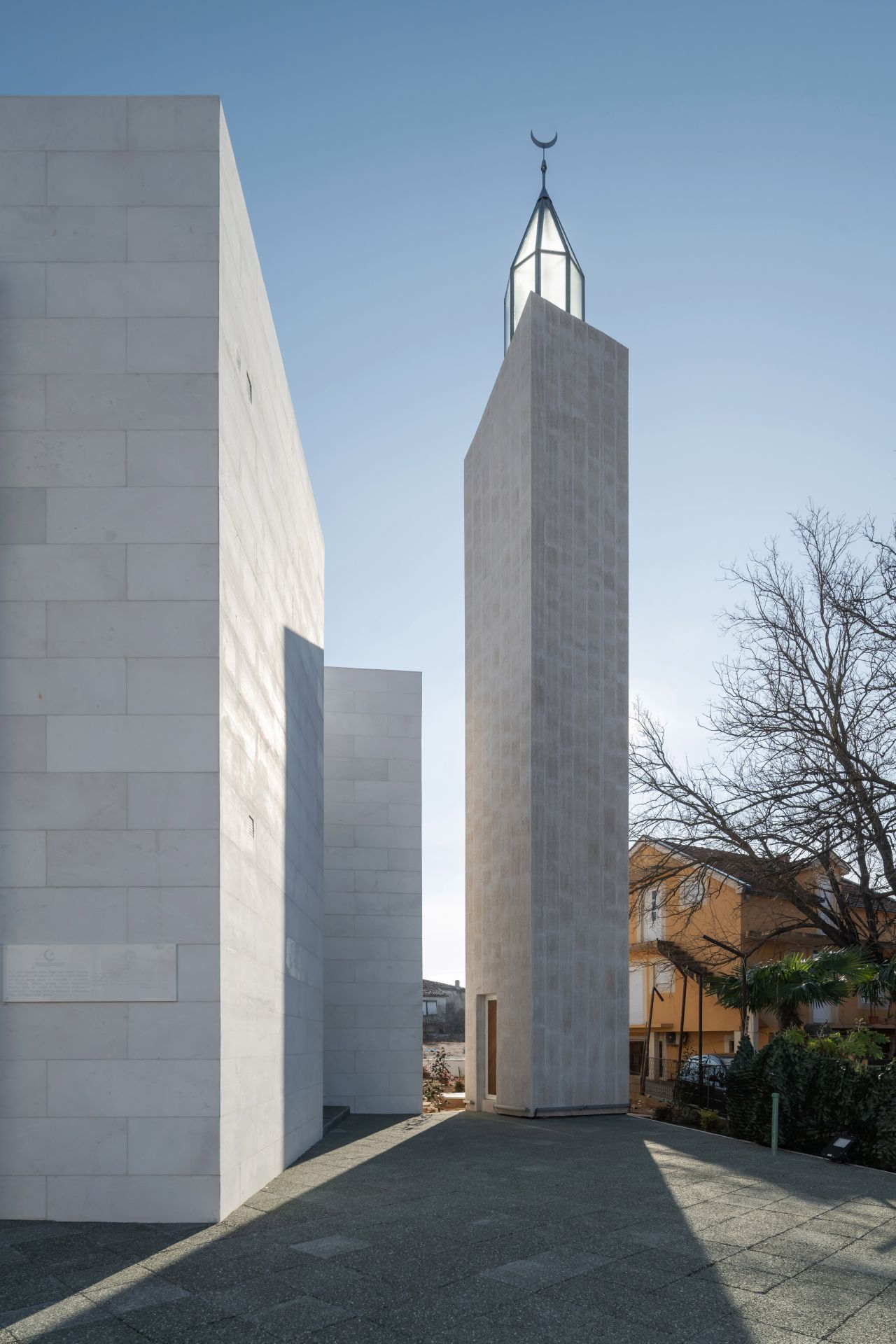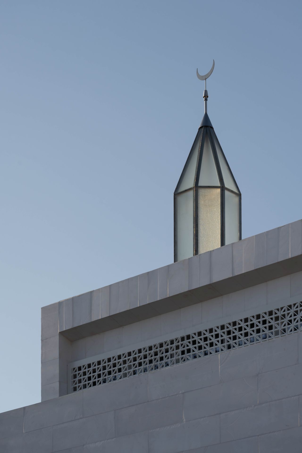 Minaret se završava osmougaonim, staklenim, volumenom kroz koji noću, snažno, izbija svetlost. „Na taj način se podcrtava pozicija džamije u širem urbanom kontekstu naselja Drač, pa i šire“, objašnjava arhitekta.