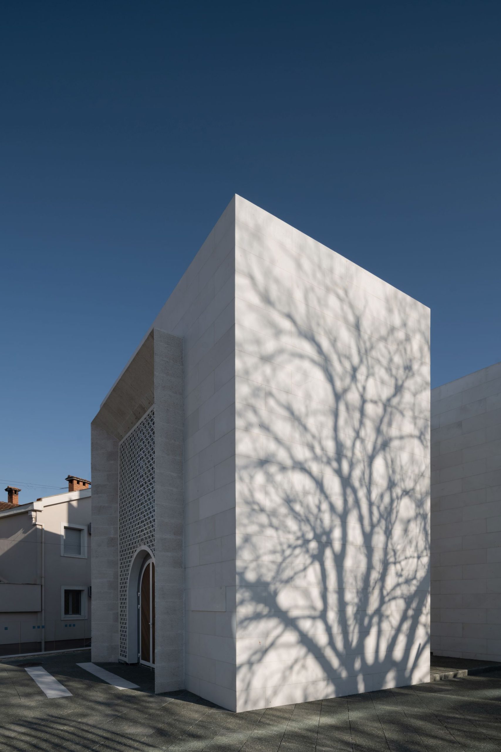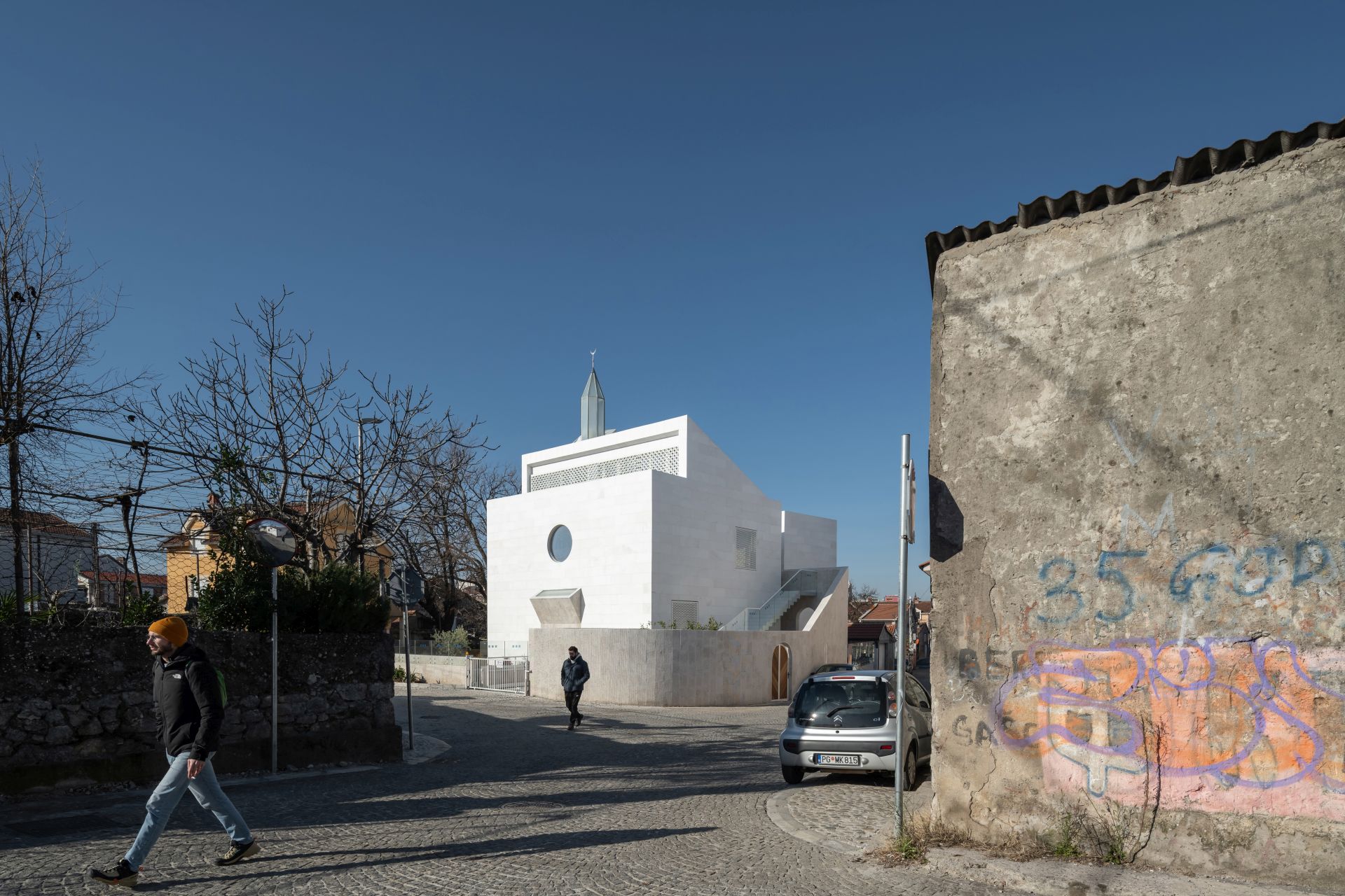 Ovaj sakralni objekat podignut na mestu džamije srušene 1956. godine, svojom formom uvažava pravilo novopridošlog, dobrog suseda koji poštuje zatečena pravila.
