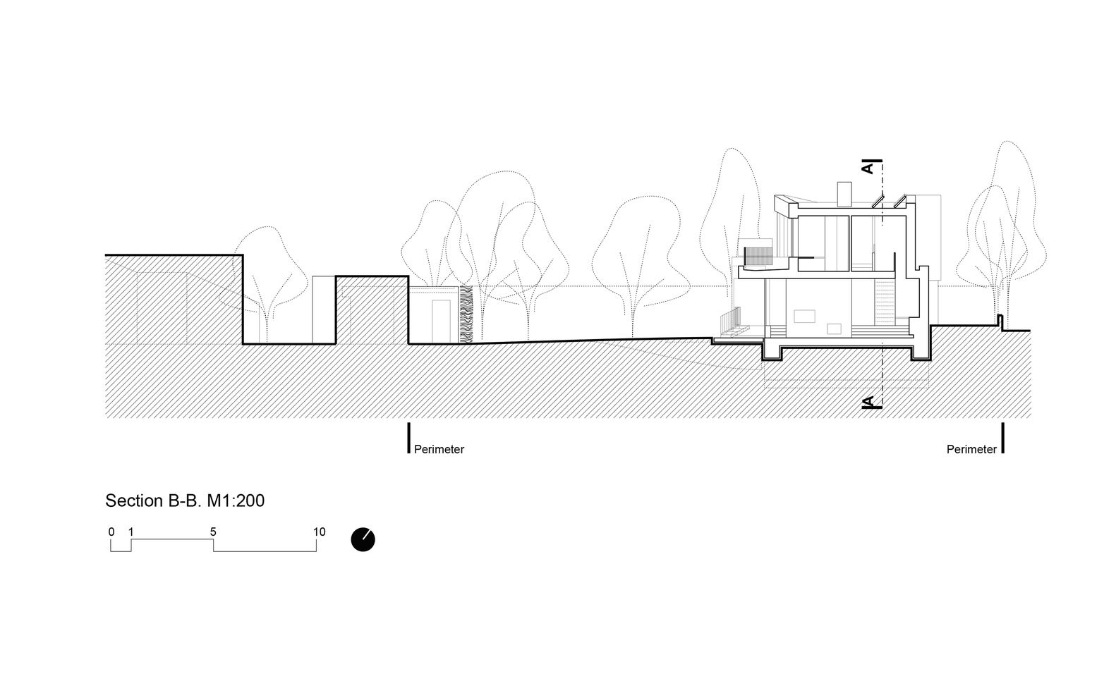Održiva kuća karakteristična je po oblom simetričnom krovu i izduženoj fasadi čiji oblik diriguje raspored prostorija u unutrašnjosti.