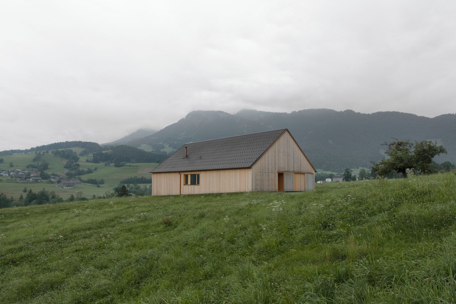 Inspiracija za oblikovanje ovog objekta od 394 kvadratna metra pronađena je u tzv. Bregenzerwälderhausu, tipskoj kući u šumovitom području šire okoline austrijskog grada Bregenca, koja predstavlja brvnaru sa dvovodnim krovom pod kojim se kombinuju radni, skladišni i stambeni prostor.
