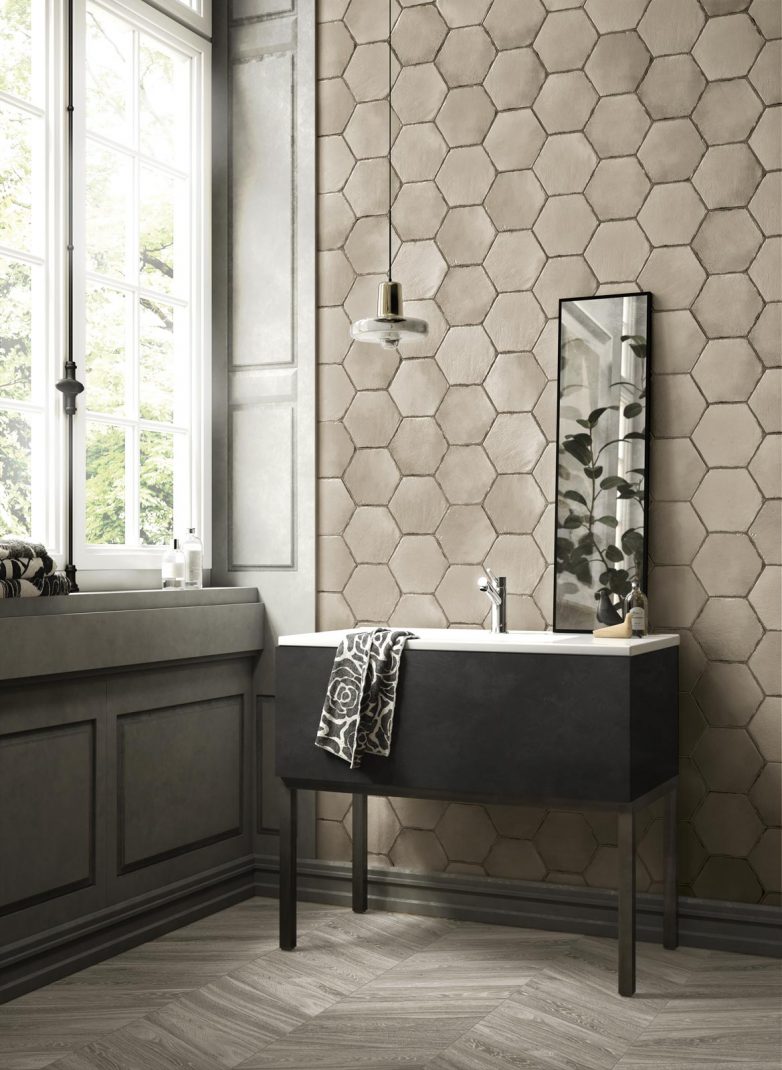 Šestougaone jednobojne pločice kombinuju se sa dva modularna dekora čime se mogu dobiti atraktivne kompozicije. Romantičnim miksom dekora dobiće se prostori koji izgledaju neodoljivo.