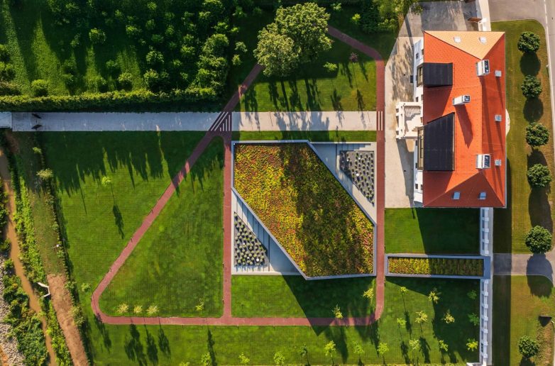 Ispod travnate površine istorijskog parka, smeštene su podzemna garaža, usluge i wellness sa bazenom.