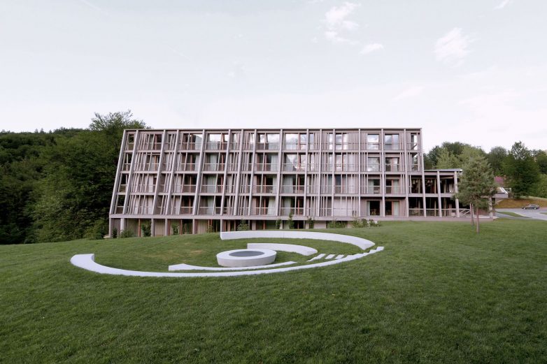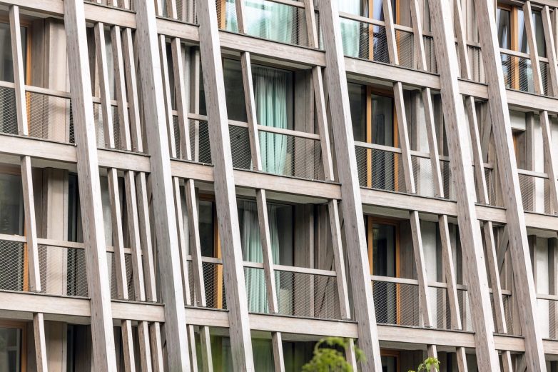 Osnovni volumen objekta je sačuvan, a dopunjen je novom drvenom strukturom u formi omotača. Osim što su na ovaj način formirani novi balkonski prostori, kao i forma ukupne mase objekta, drveni okviri pružaju i strukturnu zaštitu od čestih zemljotresa u ovom regionu, kažu arhitekte za ArchDaily.