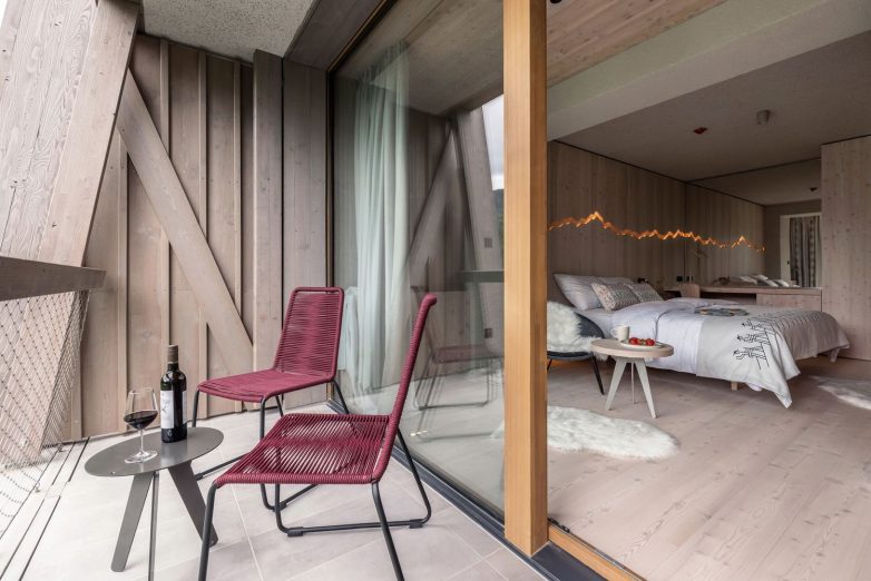 Dvovodni krovovi ostavljeni su u izvornom izgledu i inspirisali su nove trouglaste forme koje stvaraju prijatan dijalog sa planinskim vrhovima u pozadini. Celokupna nova fasada i novi arhitektonski elementi su inspirisani detaljima lokalne arhitekture, kao i lokalnim zanatskim radovima.