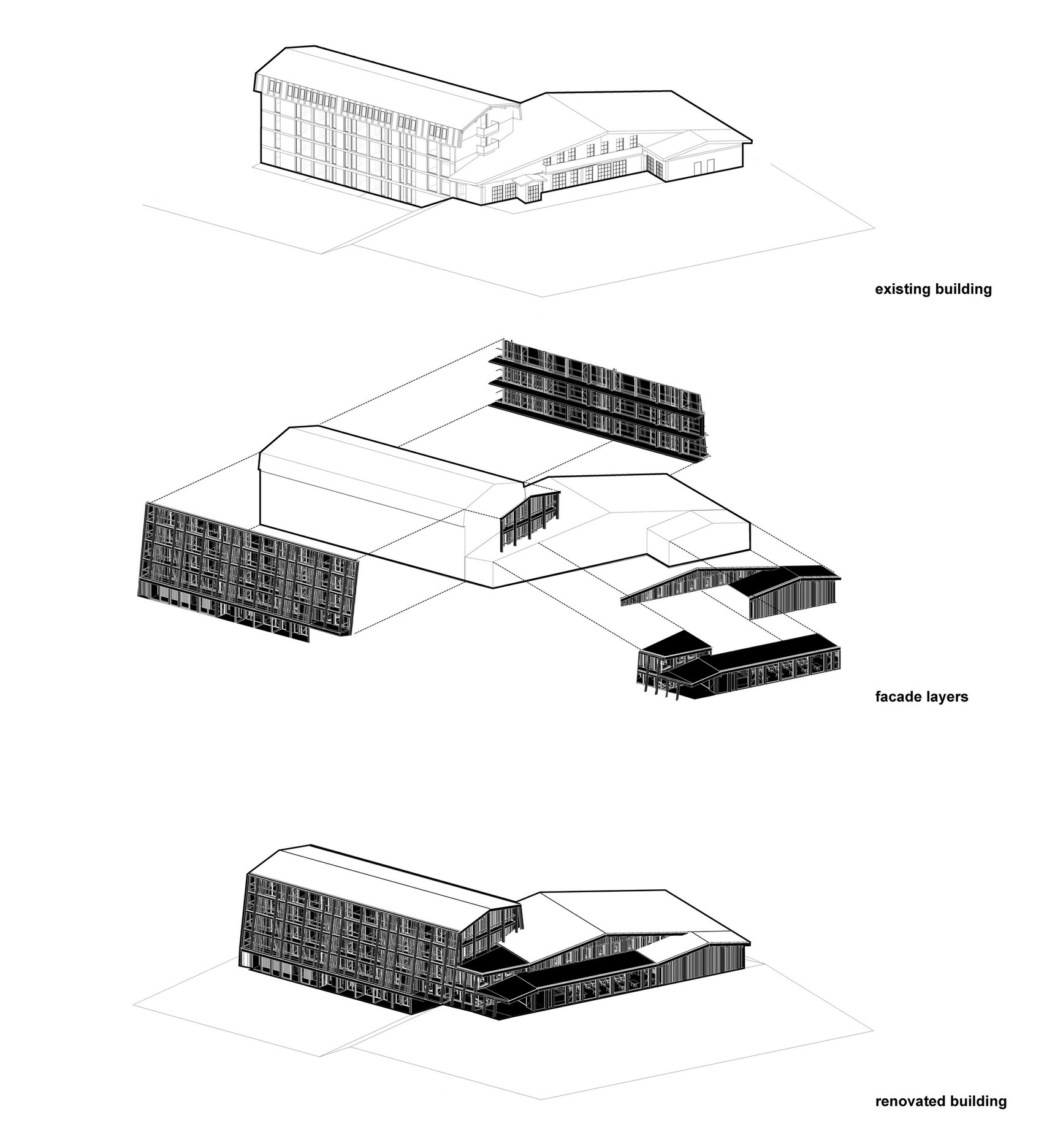 Osnovni volumen objekta je sačuvan, a dopunjen je novom drvenom strukturom u formi omotača.