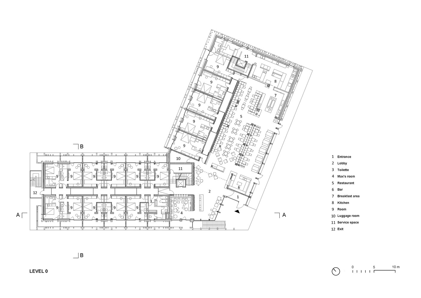 U određenim zonama hotela na podu se može videti teraco, koji je izveden od crnog kamena koje dominira u sivim drobljenim stenama. Veliki tragovi crnog kamena, koji vode do ulaza i predvorja hotela, izvedeni su u znak sećanja na čuvenog gospodina Maksa, legendarnog hotelskog mačora, koji je nakon što se prethodni hotel zatvorio radi renoviranja nestao u nepoznatom pravcu.