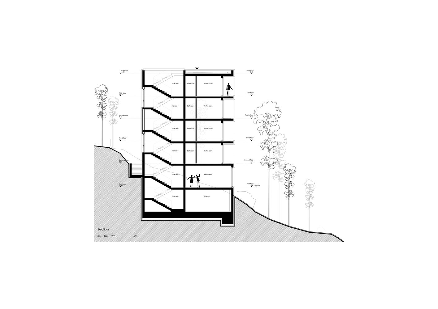 Ali objekat okružen desetinama stabala hrastovog drveta, iz čijih krošnji suptilno izranja, nije u početku bio zamišljen kao hotel. Naime, klijent je imao prvobitnu nameru da izgradi na ovoj lokaciji stambeni objekat, objasnile su arhitekte iz Varne.
