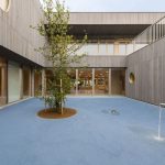 Fasada crpi inspiraciju iz konteksta okolnih zgrada, gde dominira opeka. Na ovom objektu to je reinterpretirano upotrebom dugih, glaziranih crno-plavih keramičkih pločica koje reflektuju neposrednu okolinu i sunčevu svetlost koja pada na objekat.