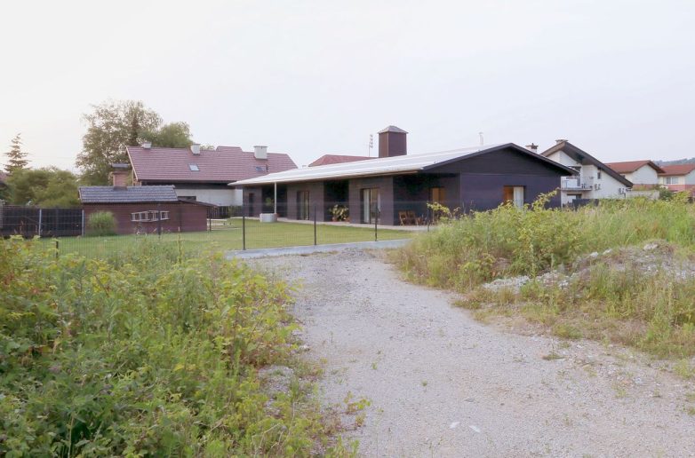 Ova prizemna kuća sa joga studijom, projektovana za mladi bračni par, nalazi se u Ljubljanskom barju, kraju koji je nekada bio močvara i udaljen je desetak kilometara od centra slovenačke prestonice. Ovu prigradsku lokaciju karakteriše izražena horizontalnost i spoj raštrkanih objekata i livada.