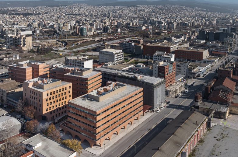 Monolitna forma, fasada u gradijentu i kolonada u prizemlju – ovako izgleda savremeni poslovni prostor u Solunu.