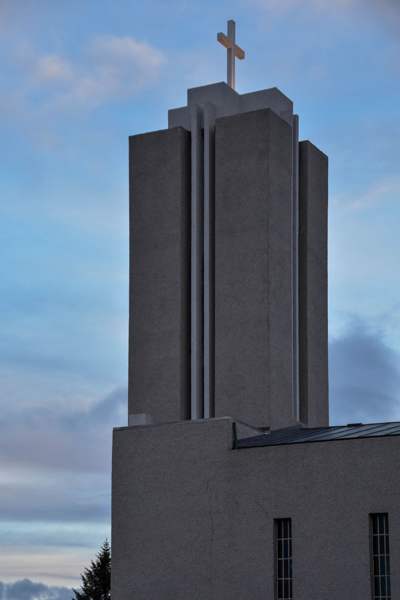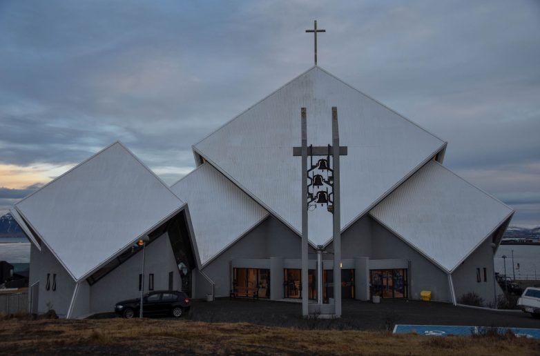 Crkva sačinjena od dva parabolična luka (sa još dva manja koji izlaze iz njih) koji se presecaju pod pravim uglom, znatno dokazuju da veličina sakralne arhitekture ne mora da diktira pažnju prolaznika, koliko to može njena forma. Upravo to su uradili arhitekte Hordur Bjarnson i Ragnar Emilson (Hörður Bjarnason & Ragnar Emilsson) sa ukrštanjem betonskih lukova i stvorivši ovu modernističku ikonu!