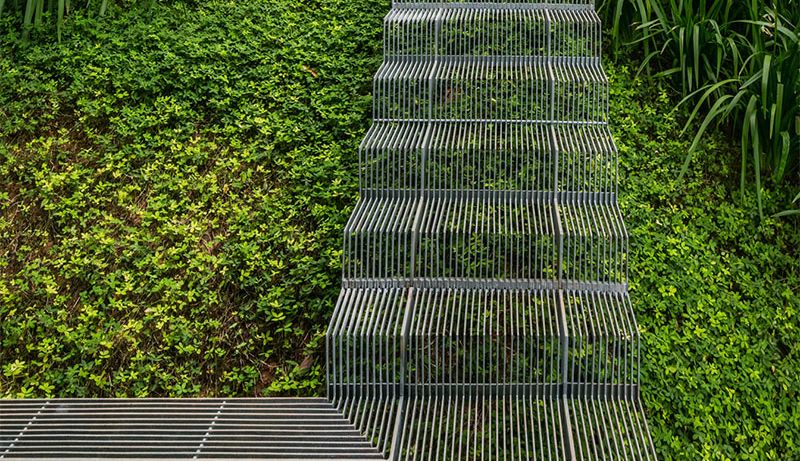 Perforirano stepenište omogućava prodor svetlosti i kišnice tako da biljke mogu normalno da rastu.