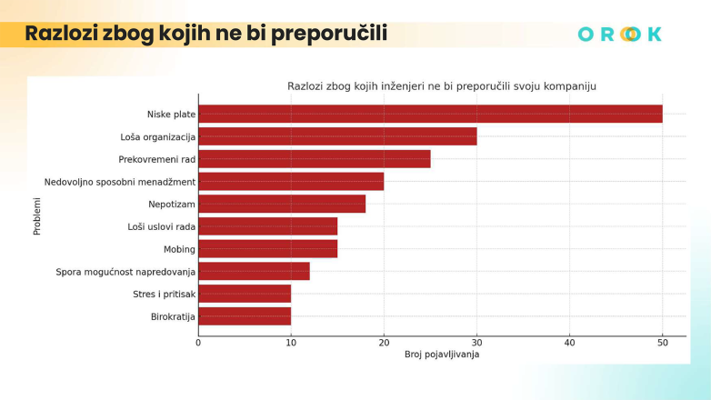 Kako je tokom prezentacije navedeno, grafikoni koji su prikazani predstavljaju zbir odgovora svih 1.200 učesnika koji su se pojavili najmanje deset puta, a njihova struktura jasno pokazuje – inženjere danas ne motiviše samo visina zarade, već i prostor za lični razvoj, profesionalno poštovanje i zdrava radna sredina.