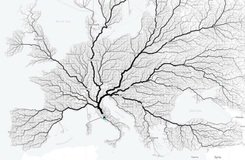 Na mreži površine 26.503.452 kvadratna kilometra, koja zapravo pokriva teritoriju čitave Evrope istraživači su definisali 486.713 polaznih tačaka, koje su povezane međusobno mrežom puteva, piše ArchDaily.
