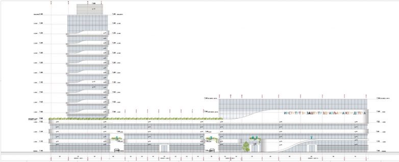 Prema idejnom rešenju za kompleks Instituta, čija će ukupna BRGP iznositi oko 40.000 m2, ostvarene su različite spratnosti pojedinih njegovih delova, do najviše ostvarene na delu namenjenom stacioniranju spratnosti Po+Pr+13 (bez tehničke etaže).