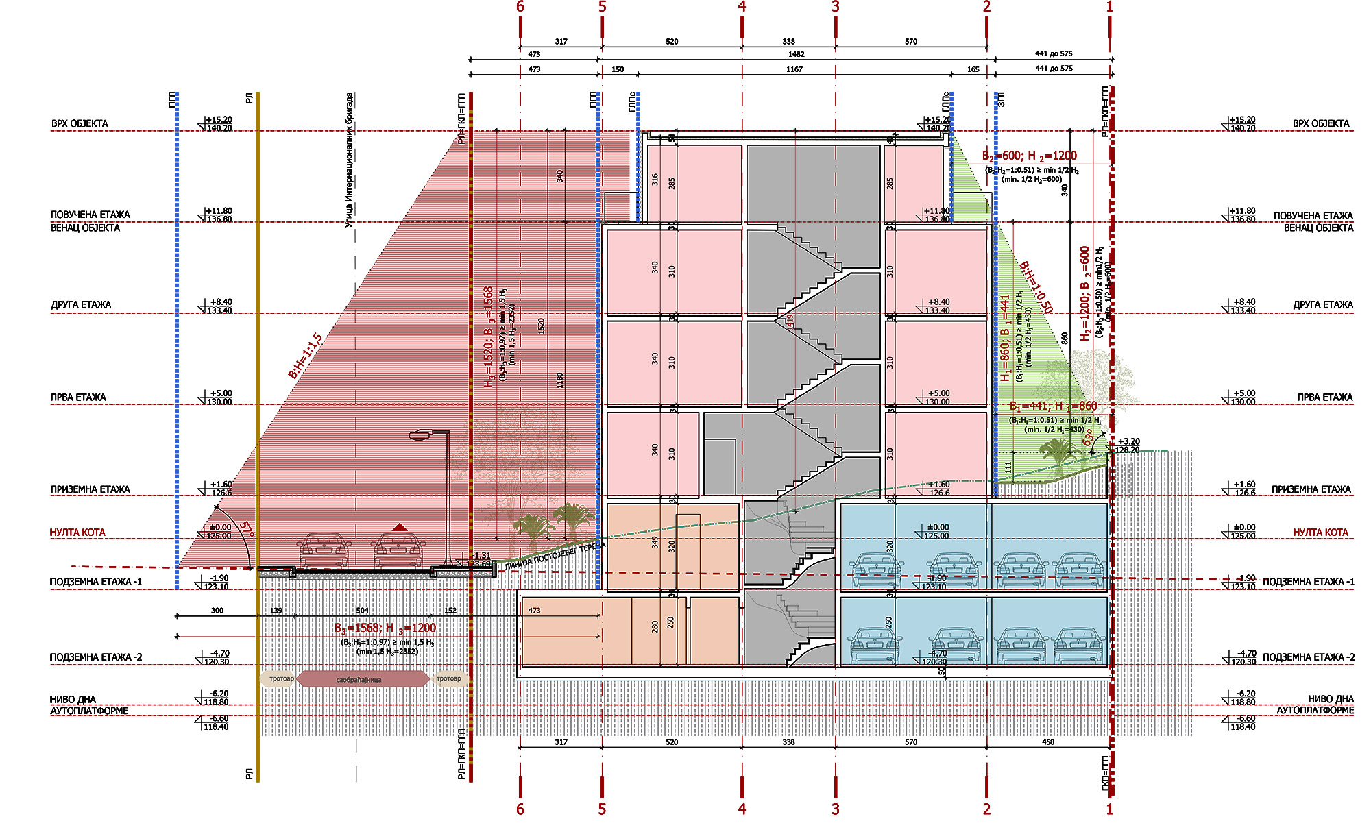 Zgrada 2Po+Pr+2+Ps gradiće se na parceli od 343 metara kvadratnih. Imaće četiri stambene jedinice kao i osam parking mesta.