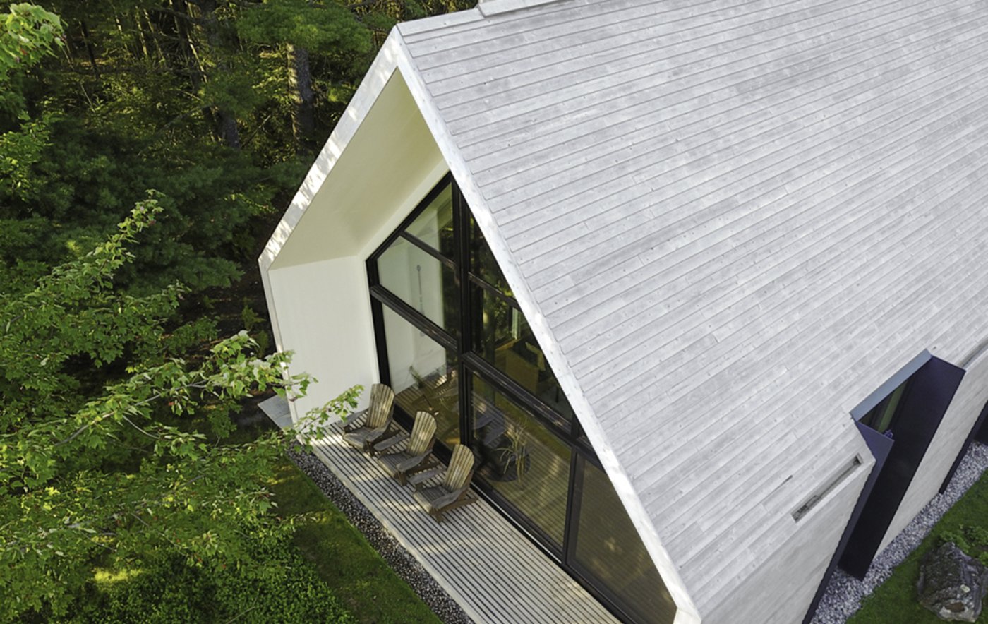 Krov i fasada objekta izvedeni su od belog kedrovog drveta, dok fasadu sa strane okrenute jezeru čine tri velika staklena panela koji omogućavajući prisnu povezanost unutrašnjosti objekta s okruženjem.