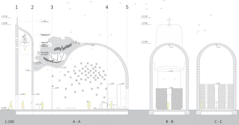 Napominje da je enterijer crkve proizašao iz forme i sirovog materijala, dok je finalna crkva prikazana bez freskografije jer ta tema nije bila u okviru njenog master rada.