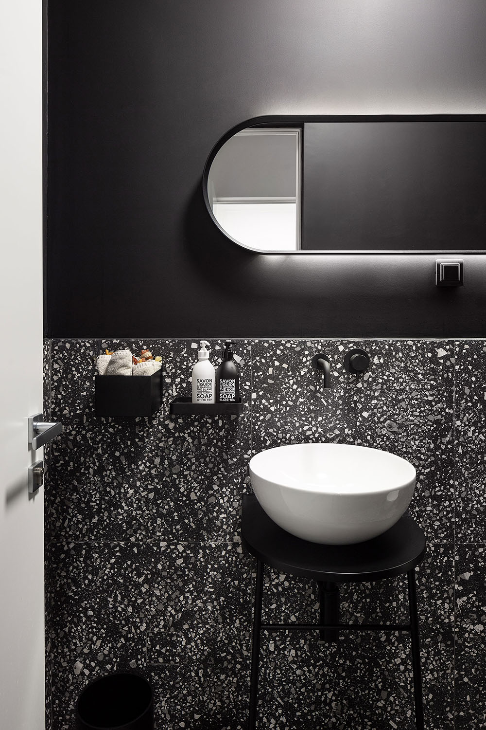 Prema natkrivenoj terasi nalazi se Umomuku outdoor kolekcija – sofa, fotelja i stočić, čiji dizajn potpisuje hrvatski 3LHD. Radi se o nameštaju za udobno i opušteno sedenje nenametljivog i jednostavnog dizajna. Izvorno je dizajniran za plažu Mulini u Rovinju, a naknadno redizajniran za svakodnevnu upotrebu.  Ležaljka Umomoku deo je prostorije s unutrašnjim bazenom. Fotelja Oblique sastavni je deo dnevnog boravka, a Monk barske stolice deo su trpezarije.
