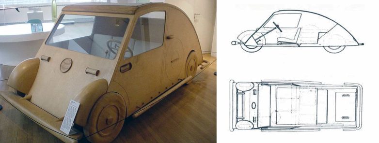 Još 1936. godine dizajnira automobil, koji je u to vreme ima veoma revolucionarni dizajn, pa još uvek nije utvrđeno da li je arhitekta pažljivo pratio razvoj na automobilskoj sceni ili je bio jednostavno vizionar kao i na polju arhitekture.