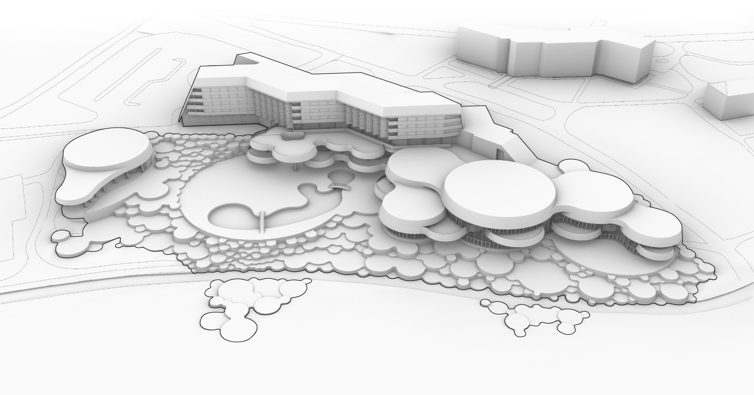 Vizuelni dizajn zadržanih prostora izrazito je organski i zasnovan je na kružnim potezima. Da bi se postigao homogen konačni vizuelni izraz kompleksa koji se prostire na 14.600 kvadrata, ovaj pristup se primenjuje kao polazište za projektovanje novih zgrada koje će se pružati na 6.040 m2. Planirane intervencije, dakle, ne prave razliku između zgrade i spoljašnjeg izgleda: svi će koristiti iste materijale i fluidni dizajn.