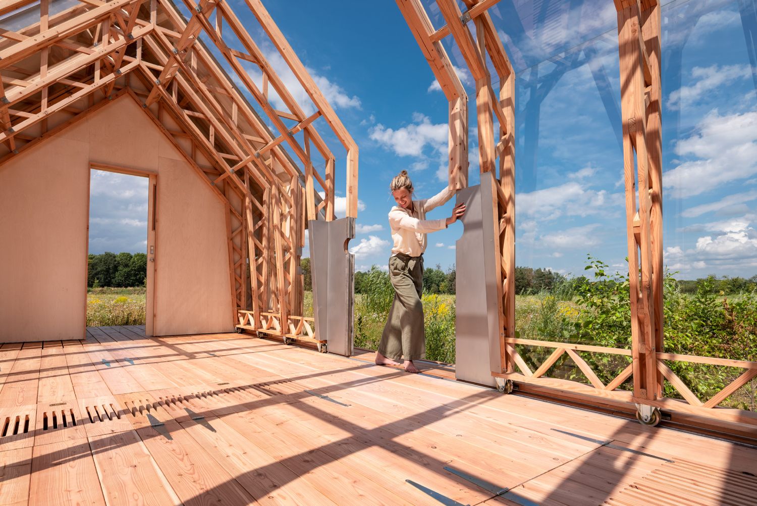 Ovaj multifuncionalan objekat ima ima unutrašnju strukturu izveden u kombinaciji drvenih greda i stakla, koja je distancirana od spoljašnjih drvenih zidova i metalnog krova. Pojedini unutrašnji, kao i spoljašnji elementi postavljeni su na klizače kako bi se po potrebi mogli praviti različiti rasporedi.