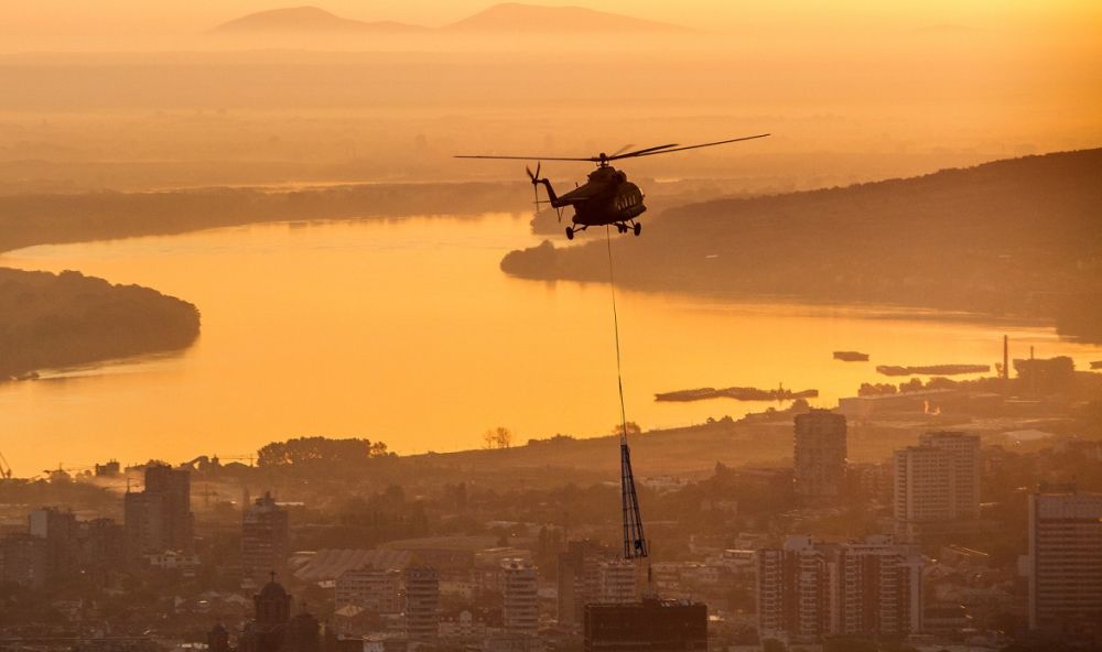 Zanimljivo da su pre četiri godine piloti Vojske Srbije helikopterom Mi-17 podigli takozvani špic, ali zbog jakog vetra nisu mogli da ga bezbedno postave zajedno sa radnicima koji su se nalazili unutar pilona. Tada je montiranje vrha pilona odloženo na nekoliko dana dok se vremenski uslovi ne poboljšaju. U drugom helikopeteru RViPVO bio je i fotograf Dušan Atlagić čije fotografije ovog nesvakidašnjeg događaja su prvi put viđene na sajtu TangoSix a uz njihovu ljubaznost, objavljujemo ih i na portalu Gradnja.rs.