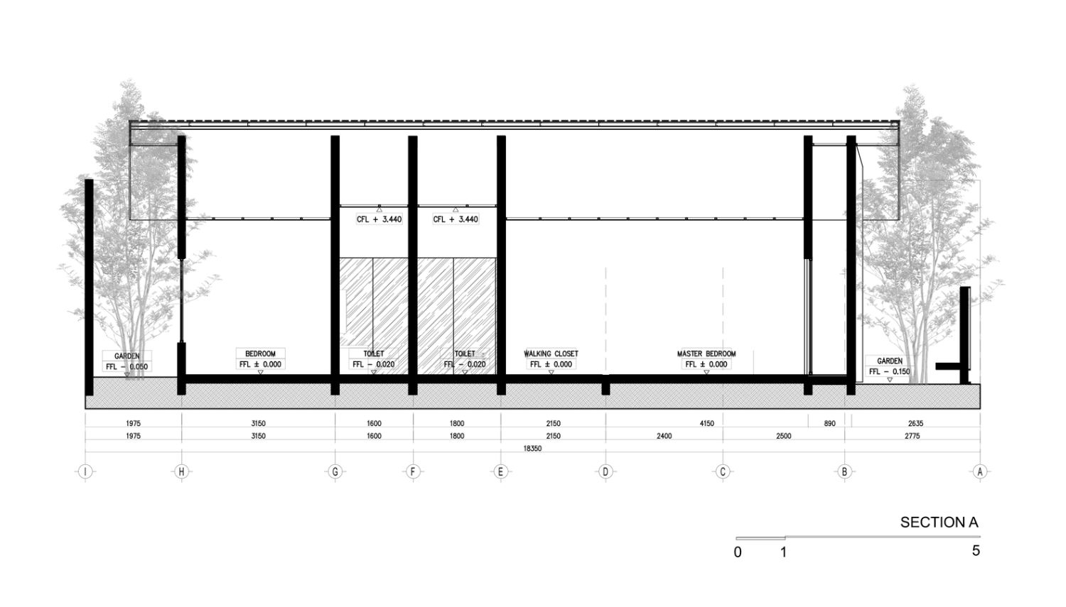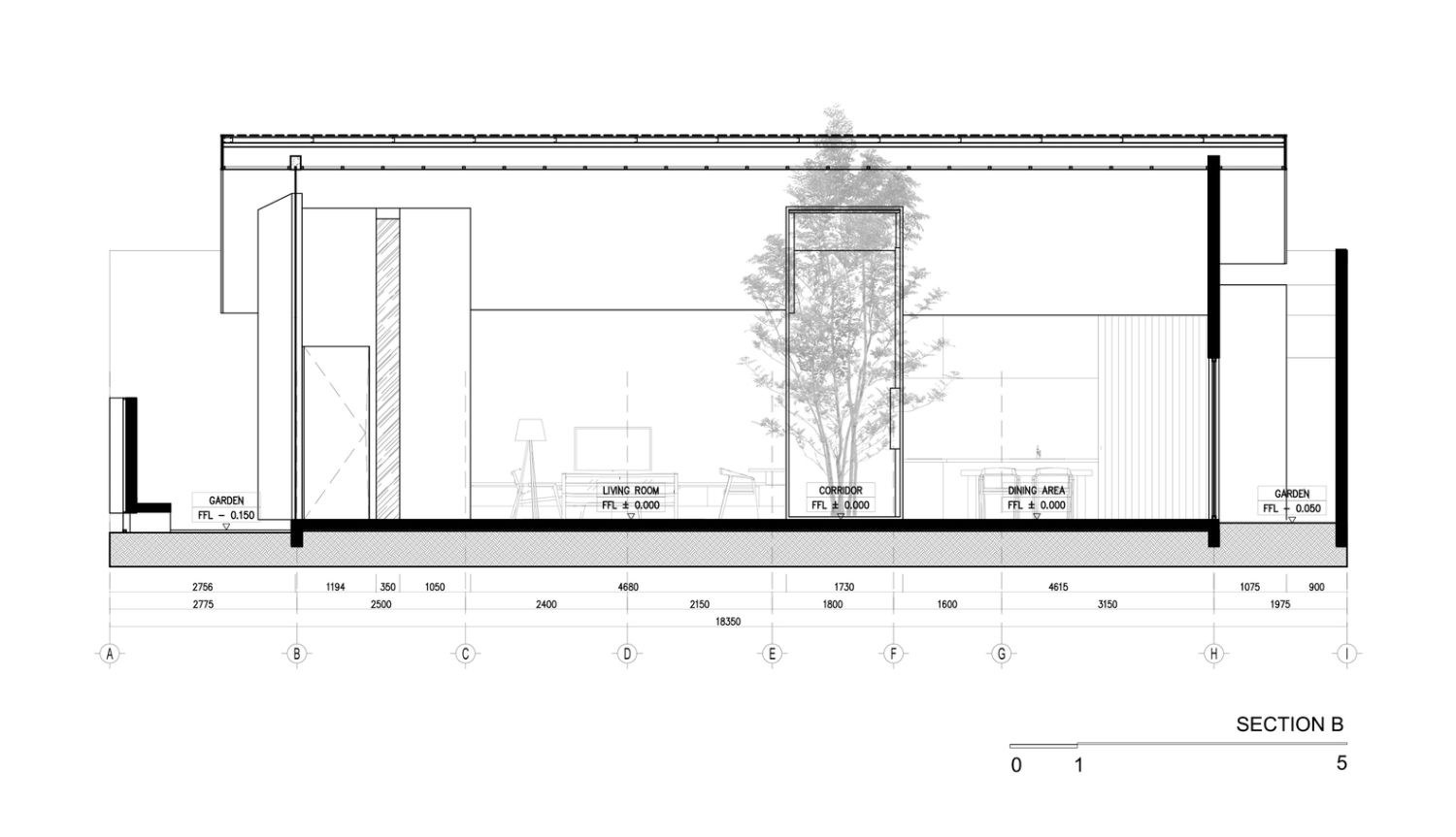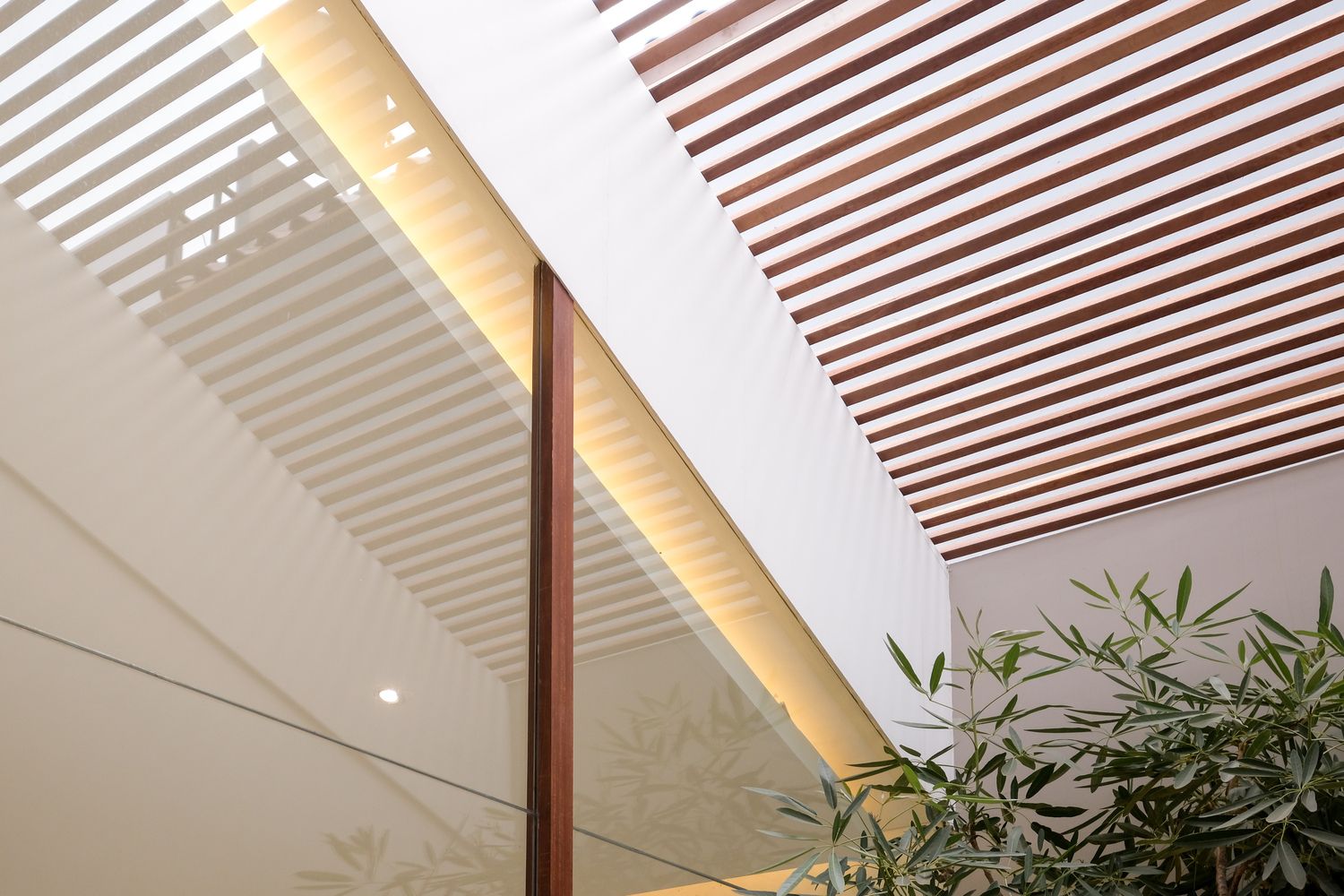 Proporcija je još jedan aspekt koji su arhitekte pažljivo razmatrali, imajući u vidu da je tavanica enterijera zapravo u ravni sa linijom krova kako bi adekvatno mogla da se formiraju unutrašnja dvorišta.