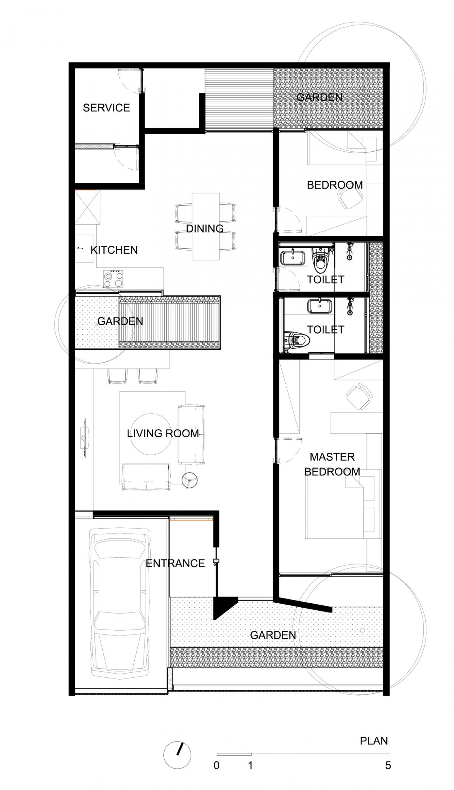 Što su zahtevi teži, to arhitekte daju bolja rešenja! Tako je i u ovom slučaju… U provinciji Banten na Javi, nikao je novi objekat koji je bilo potrebno postaviti u gusto izgrađenom naselju, odnosno na placu od 1,62 ara i to tako da kuća od 125 kvadrata deli fasadne zidove sa susednim objektima koji su izgrađeni i pre 10 do 20 godina.