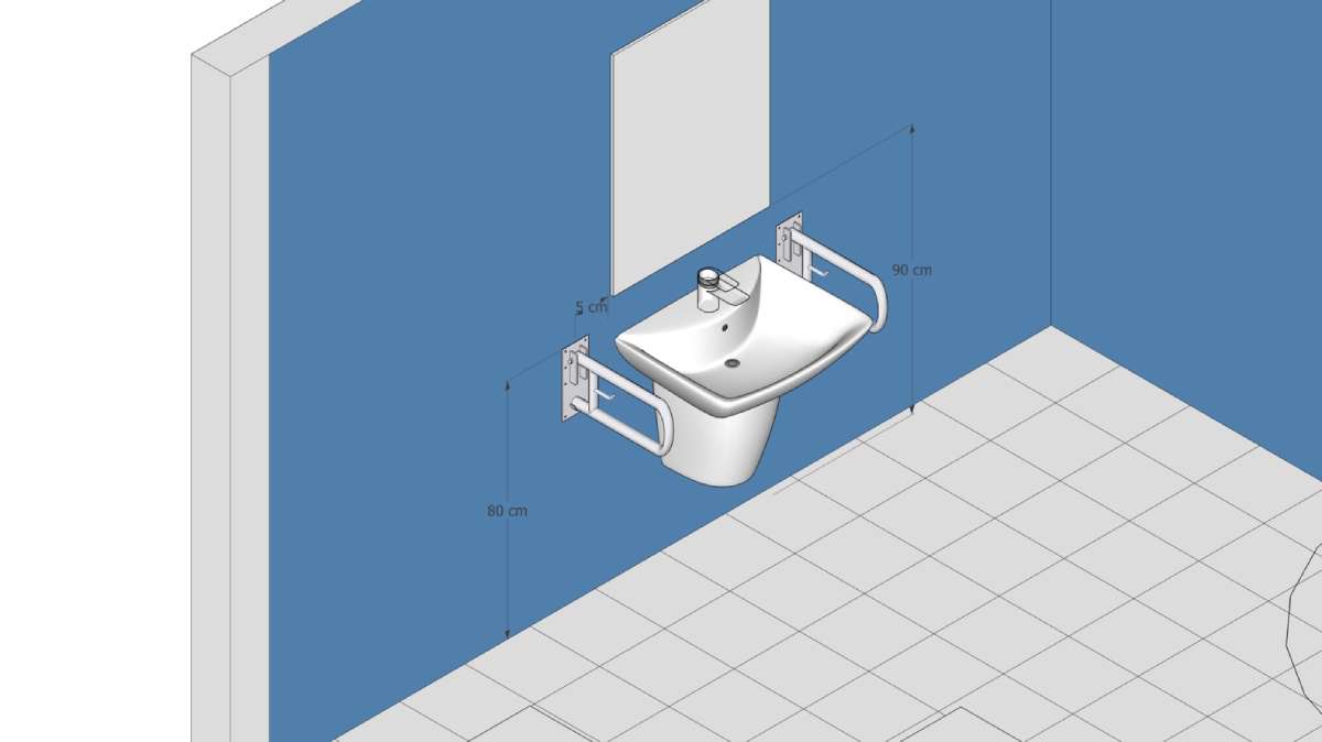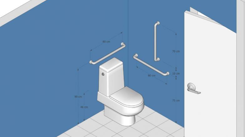 Ukoliko je u pitanju kupatilo većih dimenzija preporučuje se postavljanje pomoćnih drški na slobodnim zidovima koji se nalaze između strateških tački u kupatilu.