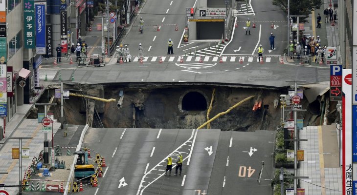 U centru japanskog grada Fukuoka, saobraćajnica se potpuno urušila zbog radova na proširenju podzemnih linija preteći da okolne zgrade povuče sa sobom. Međutim, Japanci su još jedanput pokazali i dokazali njihovu veštinu i efikasnost pa je saobraćajnica puštena u rad posle samo nedelju dana.