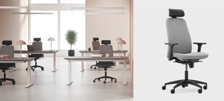 Light Up model poljskog proizvođača kancelarijskog nameštaja Profim ima dvostruki izbor tapacirunga, lumbalne potpore, vrste mehanizma i baze.