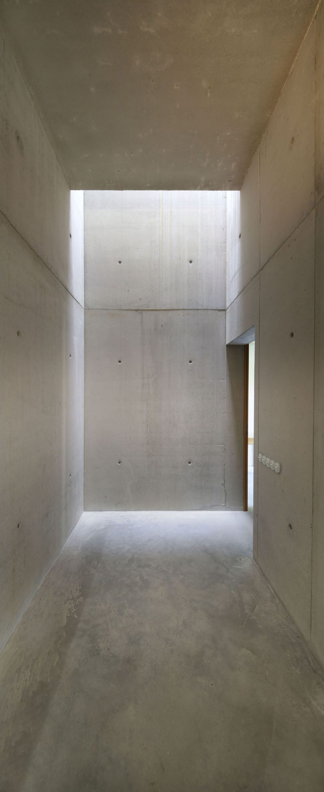 Tehnologija izrade vidljivog, sirovog betona određuje sliku enterijera, te su jedini „dekor“ u prostoru vidljivi tragovi oplate.