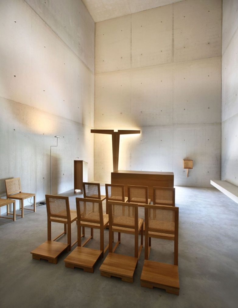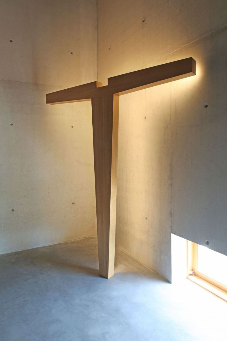 Dominantan element prostora je svakako drveni krst, čija forma asocira na razapetog Hrista, podsećajući na krst u čuvenoj crkvi Santa Maria u Portugaliji, koja je jedno od najznačajnijih arhitektinih ranijih dela.