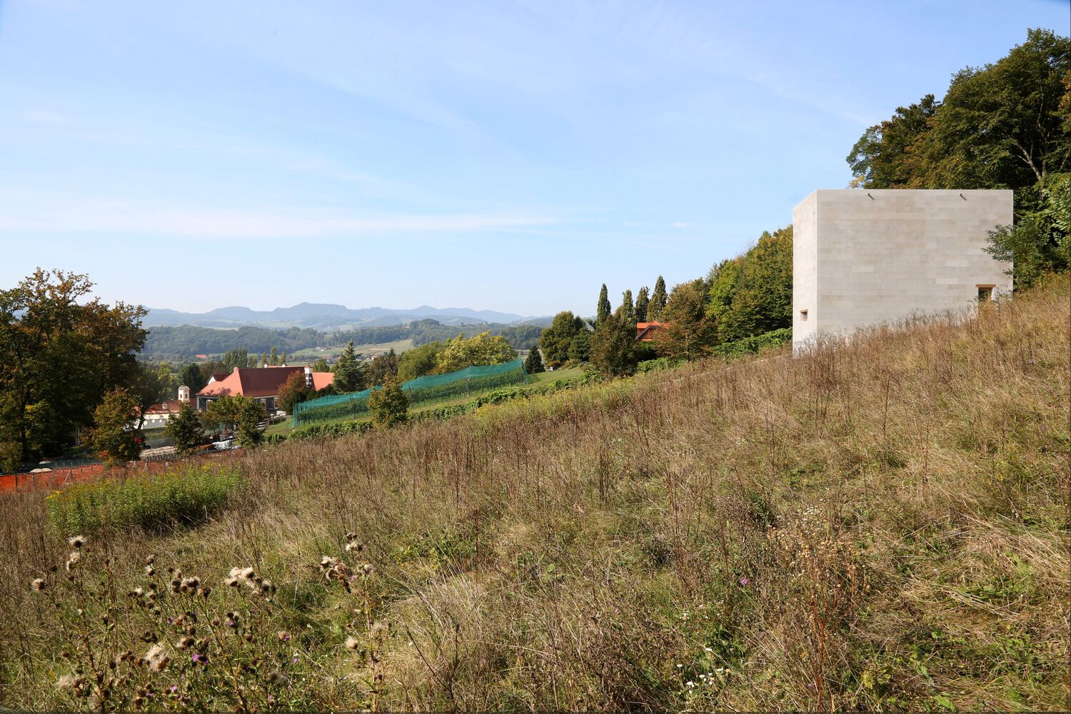 Tako je 2021. godine u padinu najvišeg dela imanja uzidana monolitna i gotovo potpuno zatvorena struktura, obložena krečnjačkim pločama.