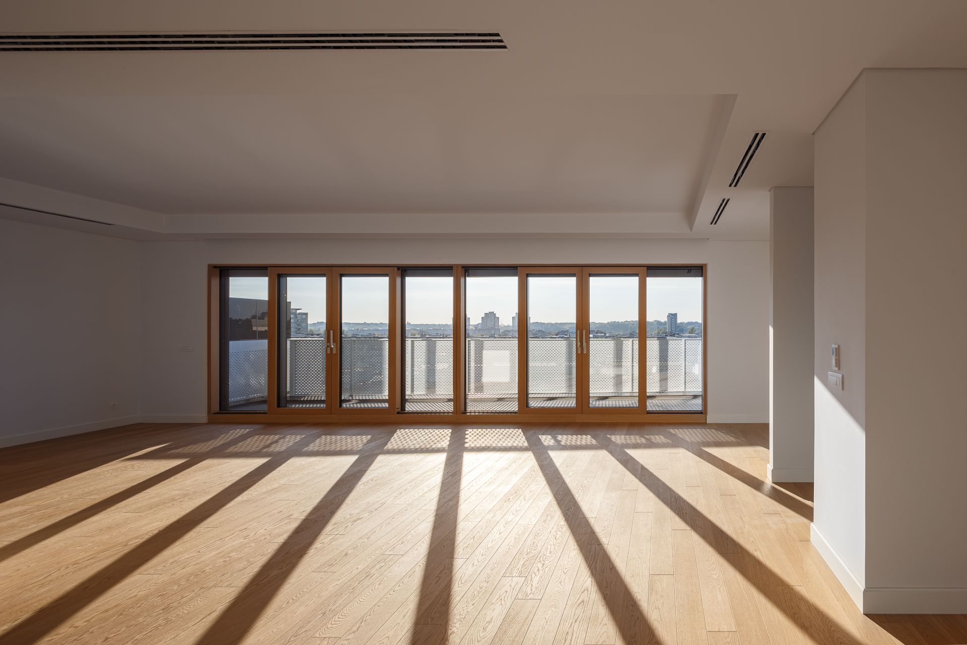 Kako objašnjava Gnjato, u organizaciji prostora stambeni prostori dobili su jedan vid savremene interpretacije novobeogradske uronjenosti u okolno zelenilo, dok terase koje su projektovane celom dužinom stana predstavljaju produžetak prostora dnevnih i spavaćih soba.
