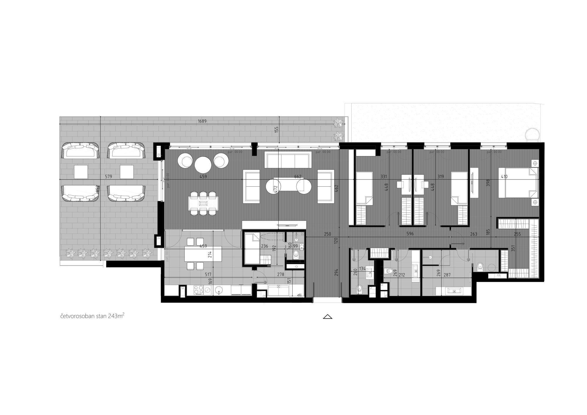 Pogledajte osnovu stana od 243m2, da li nekome tu nešto bode oči? Nazovimo taj deo stana, kutak za robove bez dnevnog svetla, ne još bolje ostava sa mokrim čvorom! Ovo je nedopustivo, da neku tu provodi svoje vreme…..ovo je za svaku osudu!!!