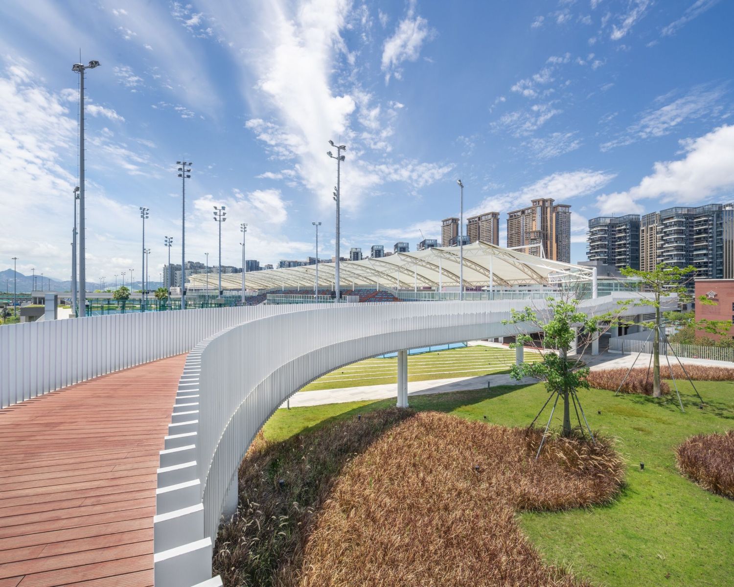 Izduženi krov dug 1,2 kilometra transformisan je u park sa terenima za košarku, mali fudbal i stadionom za profesionalne teniske mečeve.