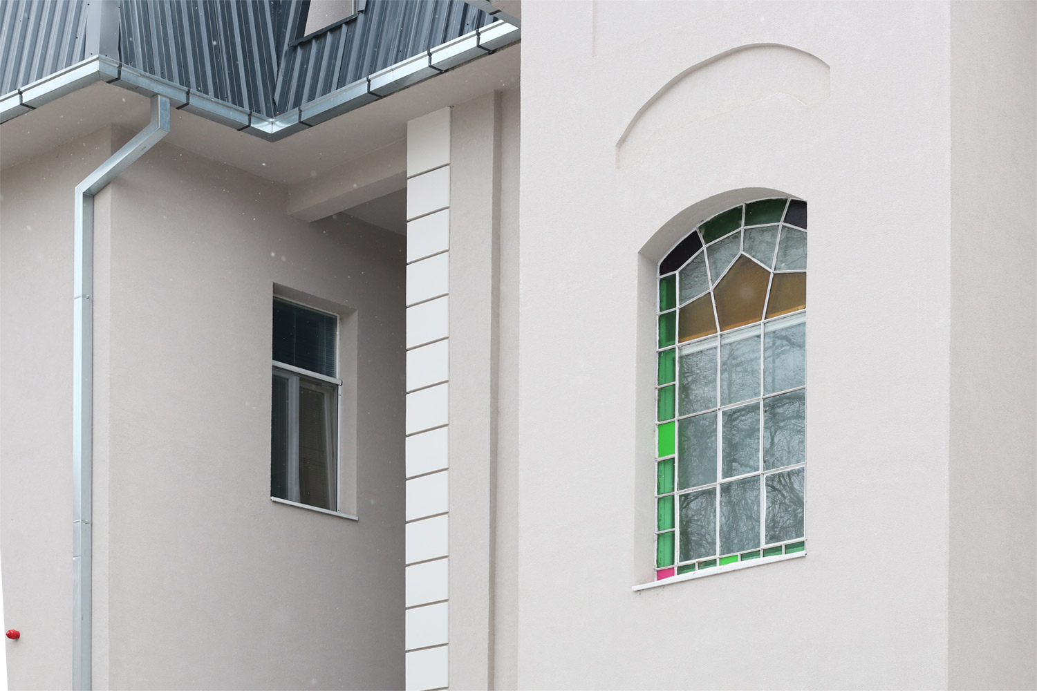 Originalni fasadni ukrasi oko prozora kao i stakleni mural sačuvani su i obnovljeni prilikom rekonstrukcije.