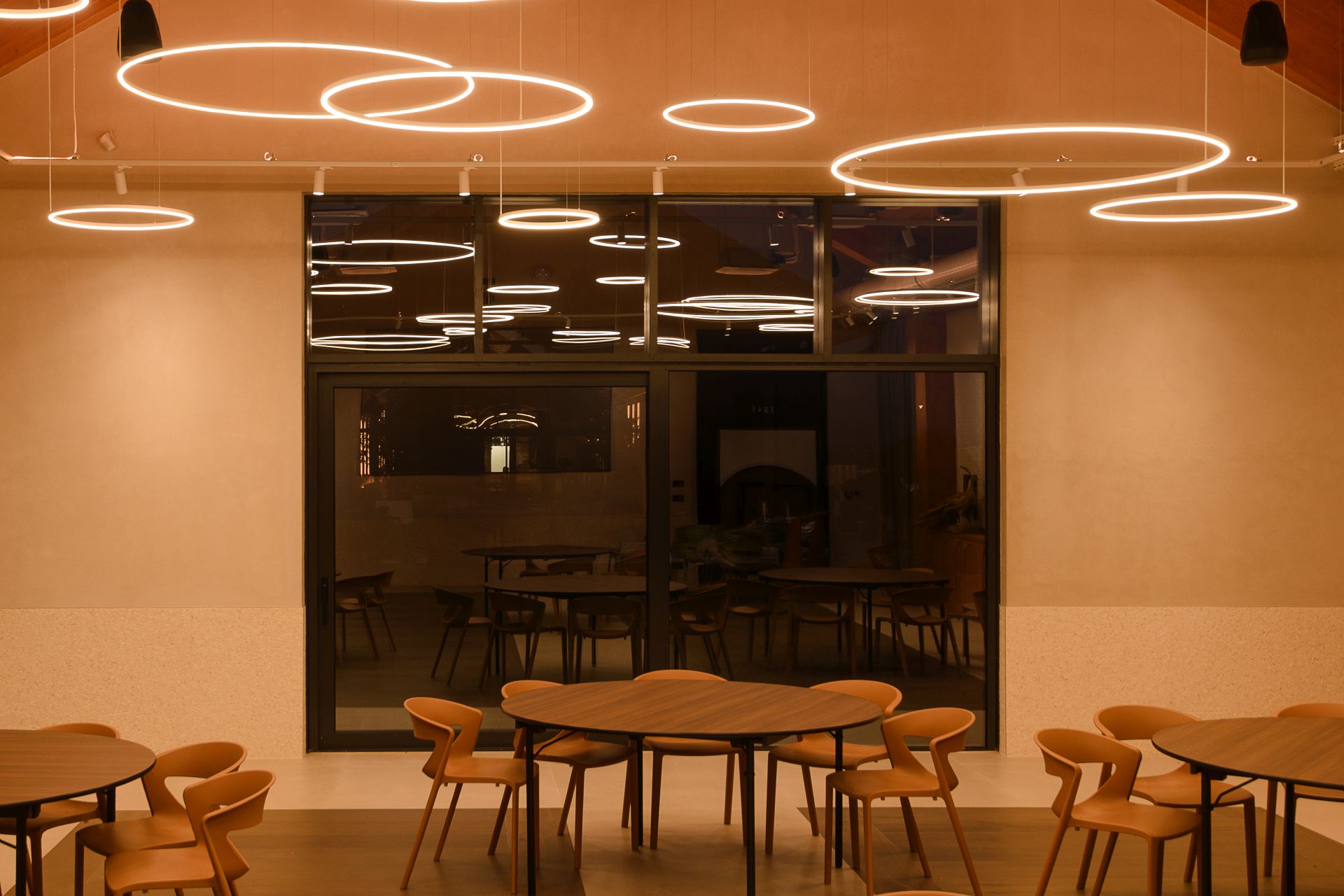 Ovakva konfiguracija rasterećuje glavni tok kretanja gostiju, omogućava efikasan rad kuhinje i bara i olakšava brzu transformaciju između dnevnog i večernjeg režima. Materijali i završne obrade birani su sa idejom dugotrajnosti i lakog održavanja, što je važno u objektima sa intenzivnim prometom.